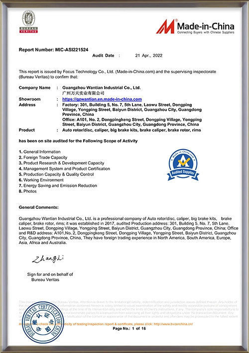 We can assure you that all of our brake calipers, brake pads, brake discs, carbon fiber performance parts, and wheels meet high quality standards. Our entire production process—from raw materials to shipping—meets the highest quality expectations of our customers. Our products are certified to [US TS16949, Bureau Veritas, DOT, EU, and ISO9001, CE].