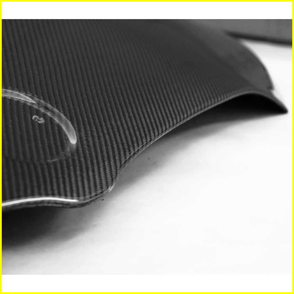 Our manufacturing process for aerodynamic parts employs vacuum forming technology to extract excess resin, ensuring a flawless surface with a lightweight distribution that doesn't compromise structural rigidity. This meticulous process allows for precise control over fit and finish, providing you with the assurance that the part will seamlessly match the factory shut lines and contours.