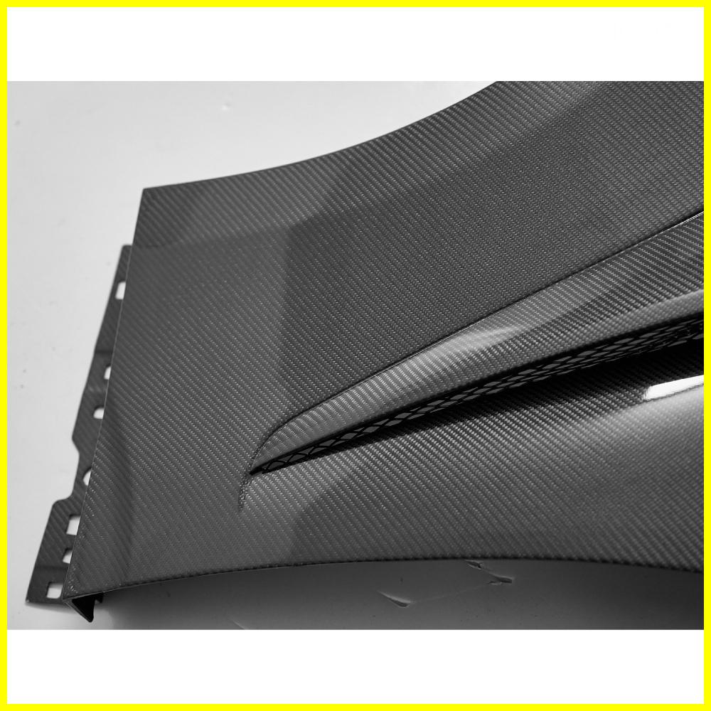 ICOOH TUNING The front hood bonnet is crafted from genuine, handmade carbon fiber. Each piece is meticulously produced to the highest standards by master craftsmen, utilizing the finest race-performance materials. Our manufacturing process for aerodynamic parts employs vacuum forming technology to extract excess resin, ensuring a flawless surface with a lightweight distribution that doesn't compromise structural rigidity. This meticulous process allows for precise control over fit and finish, providing you with the assurance that the part will seamlessly match the factory shut lines and contours.