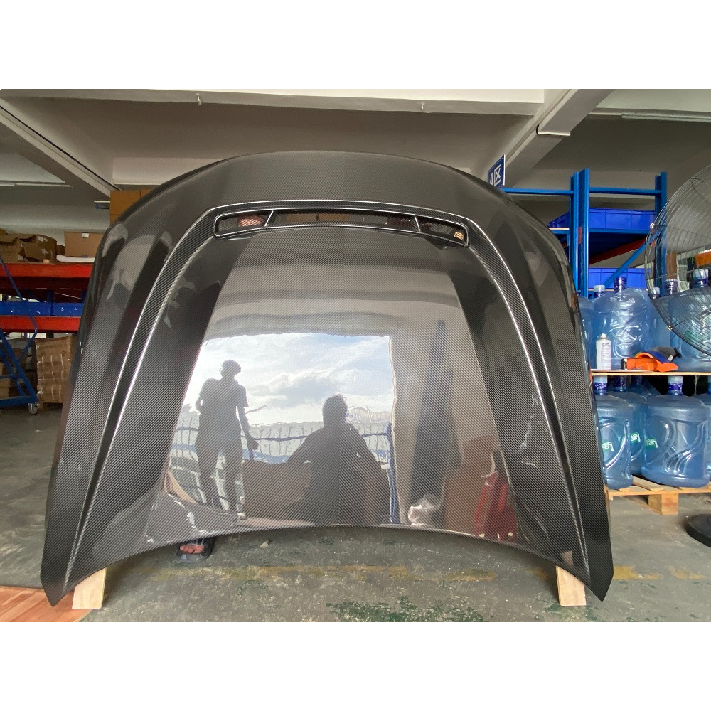 ICOOH TUNING The front hood bonnet is crafted from genuine, handmade carbon fiber. Each piece is meticulously produced to the highest standards by master craftsmen, utilizing the finest race-performance materials. Our manufacturing process for aerodynamic parts employs vacuum forming technology to extract excess resin, ensuring a flawless surface with a lightweight distribution that doesn't compromise structural rigidity. This meticulous process allows for precise control over fit and finish, providing you with the assurance that the part will seamlessly match the factory shut lines and contours.