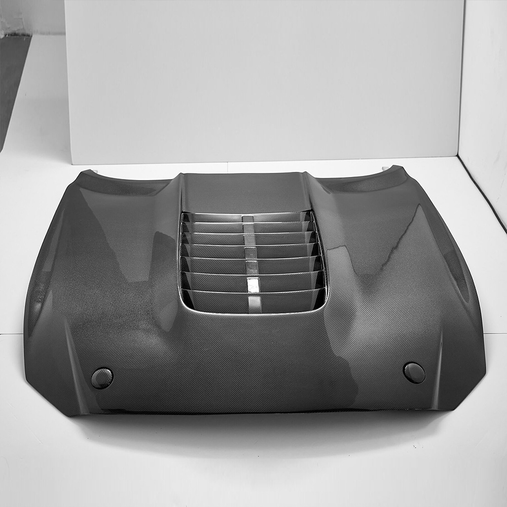Available in gloss, matte, and raw carbon finishes, the AC 004 Carbon Fiber Hood complements both aggressive builds and subtle OEM+ restorations. Optional vents, louvers, and painted matching edges are available to meet aesthetic goals without compromising structural integrity or performance.